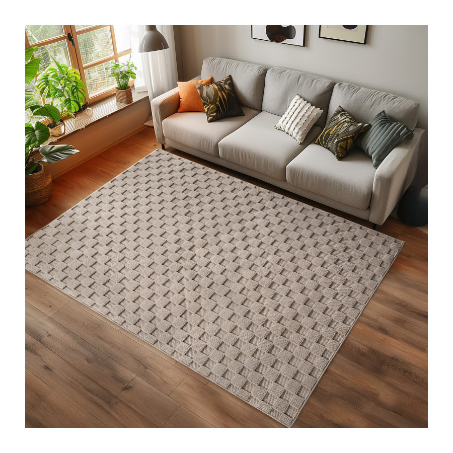 Tapis d'intérieur Composition : 100 % polyester Fabrication : Tissé à la machine Hauteur des poils : 7 mm Poids au m² : 1 600 g Support : Fil fibrillé