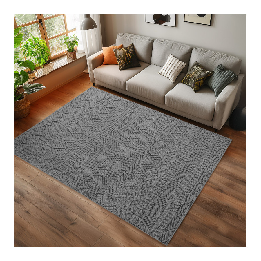 Tapis d'intérieur Composition : 100 % polyester Fabrication : Tissé à la machine Hauteur des poils : 7 mm Poids au m² : 1 600 g Support : Fil fibrillé