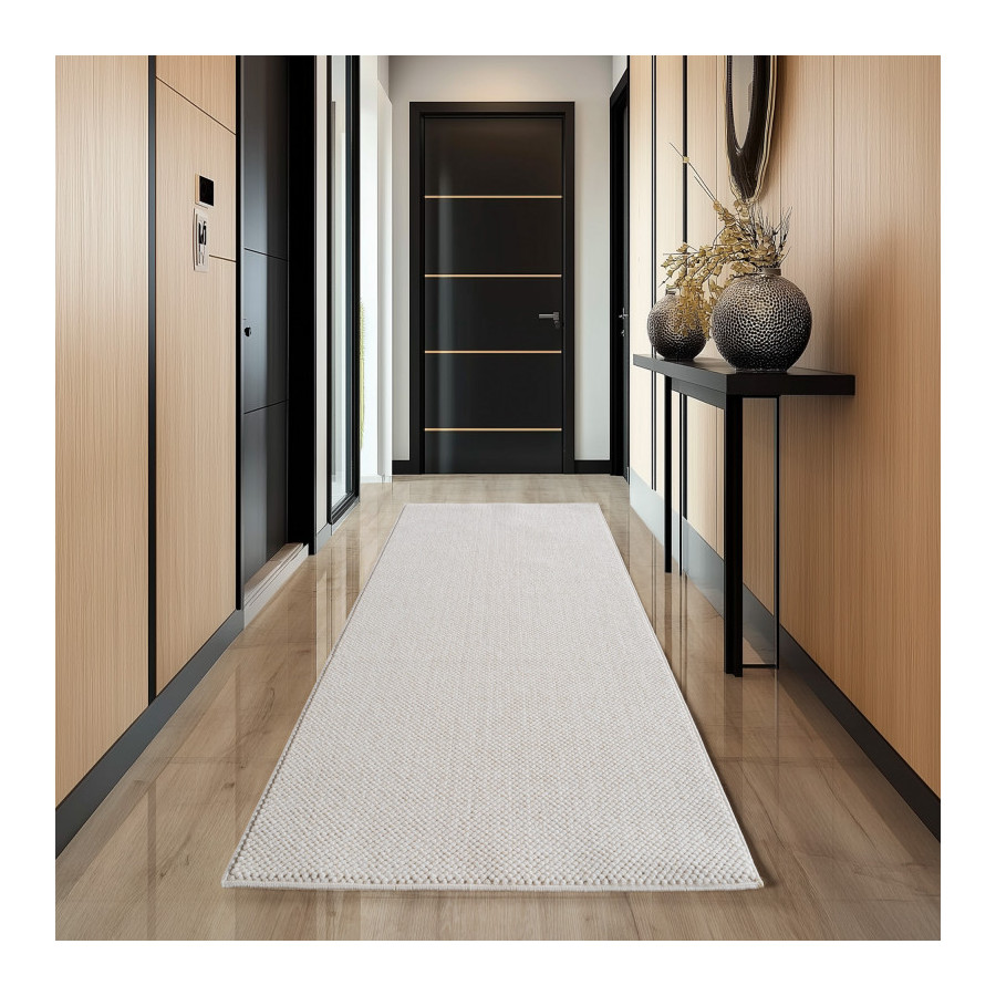Tapis d'intérieur Composition : 100 % polyester Fabrication : Tissé à la machine Hauteur des poils : 7 mm Poids au m² : 1 600 g Support : Fil fibrillé