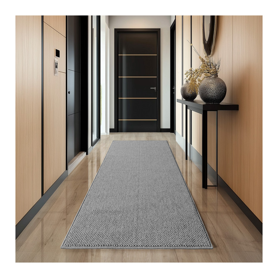 Tapis d'intérieur Composition : 100 % polyester Fabrication : Tissé à la machine Hauteur des poils : 7 mm Poids au m² : 1 600 g Support : Fil fibrillé